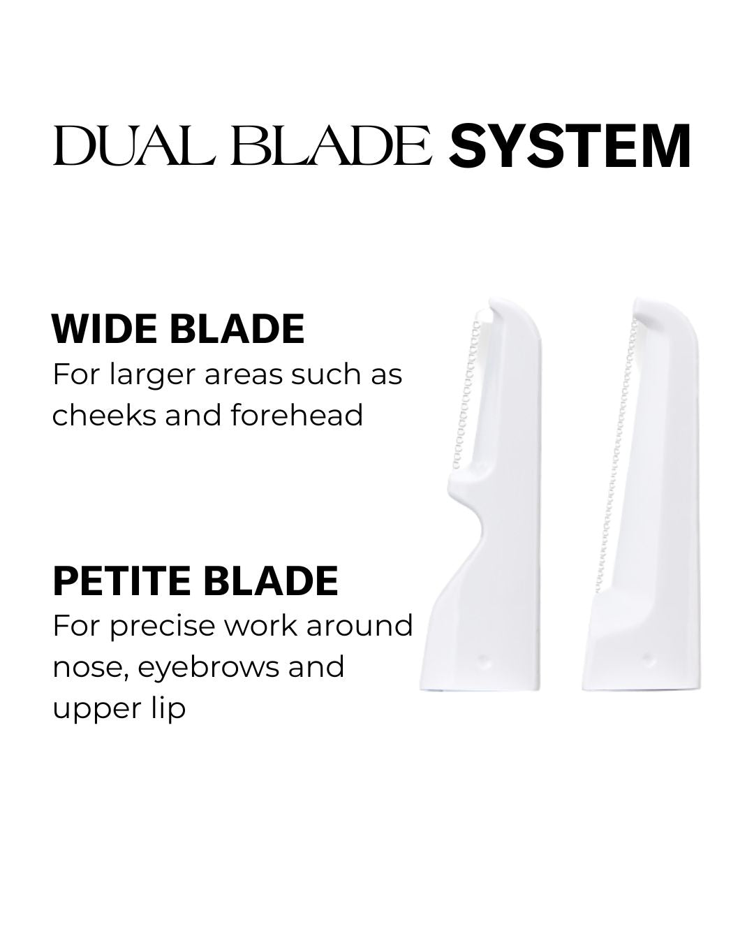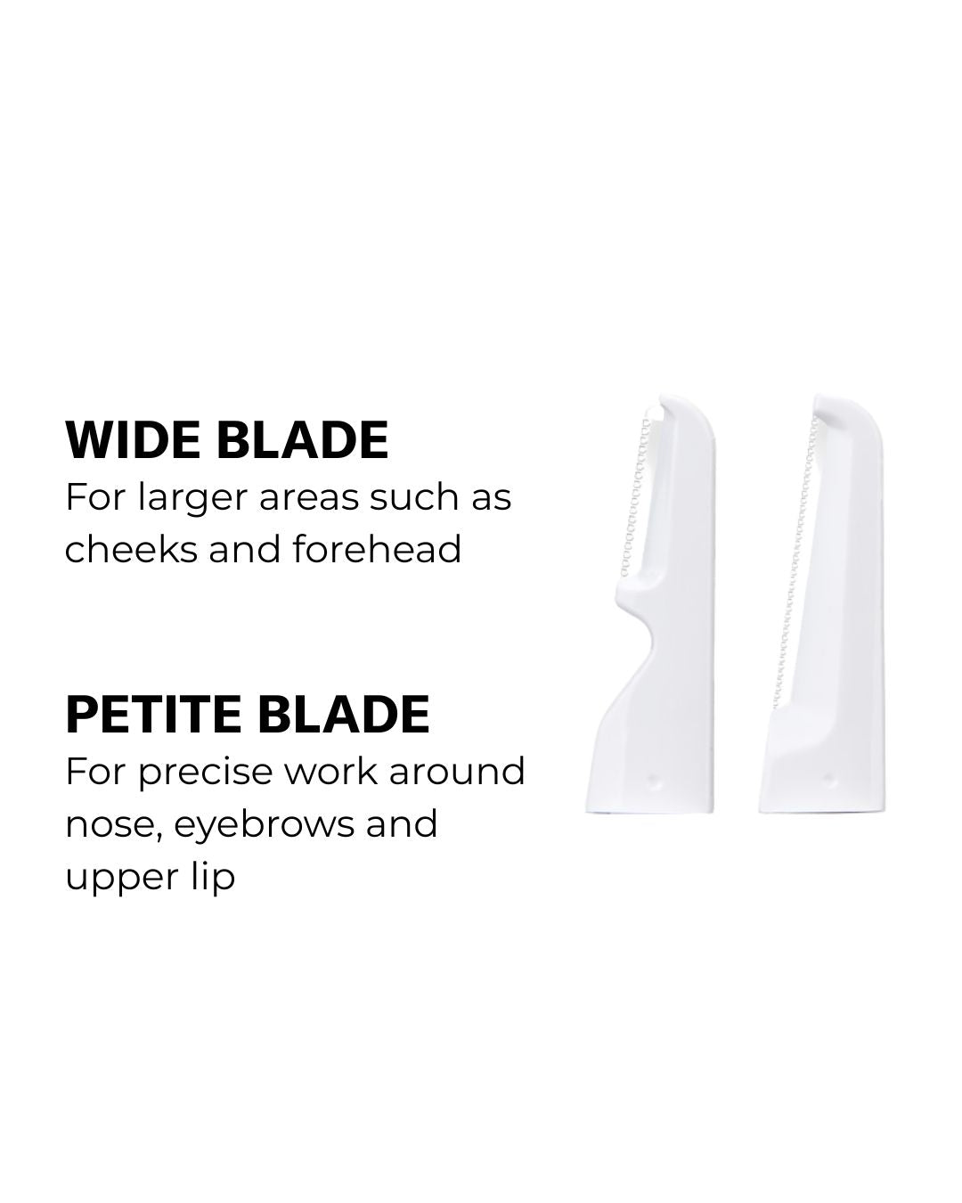 All sets comes with two blade widths to fit your routine: Petite, perfect for precision areas like above the lip, brows, or smaller contours, and Wide, designed to cover more surface area for quick, effortless shaves.