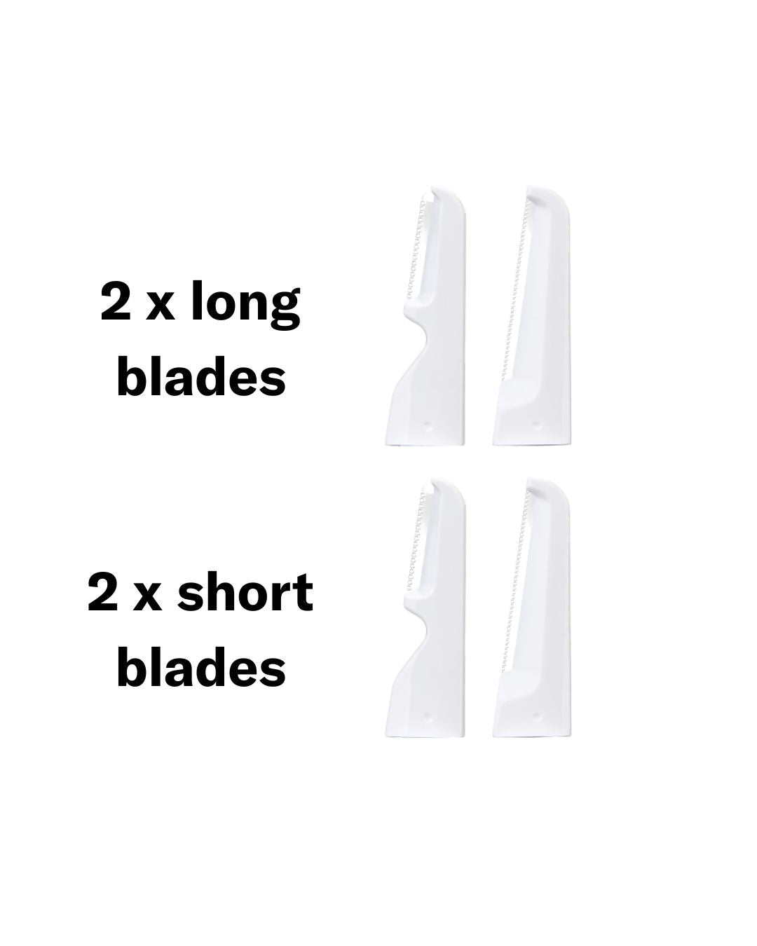 A super sharp, single blade to gently remove the finest of facial hair, smoothing contours and defining brows. The Dermaplaning Razor also exfoliates and resurfaces the skin, improves overall texture and increases skincare ingredient absorption. Refill includes 2 short blades & 2 long blades.