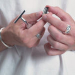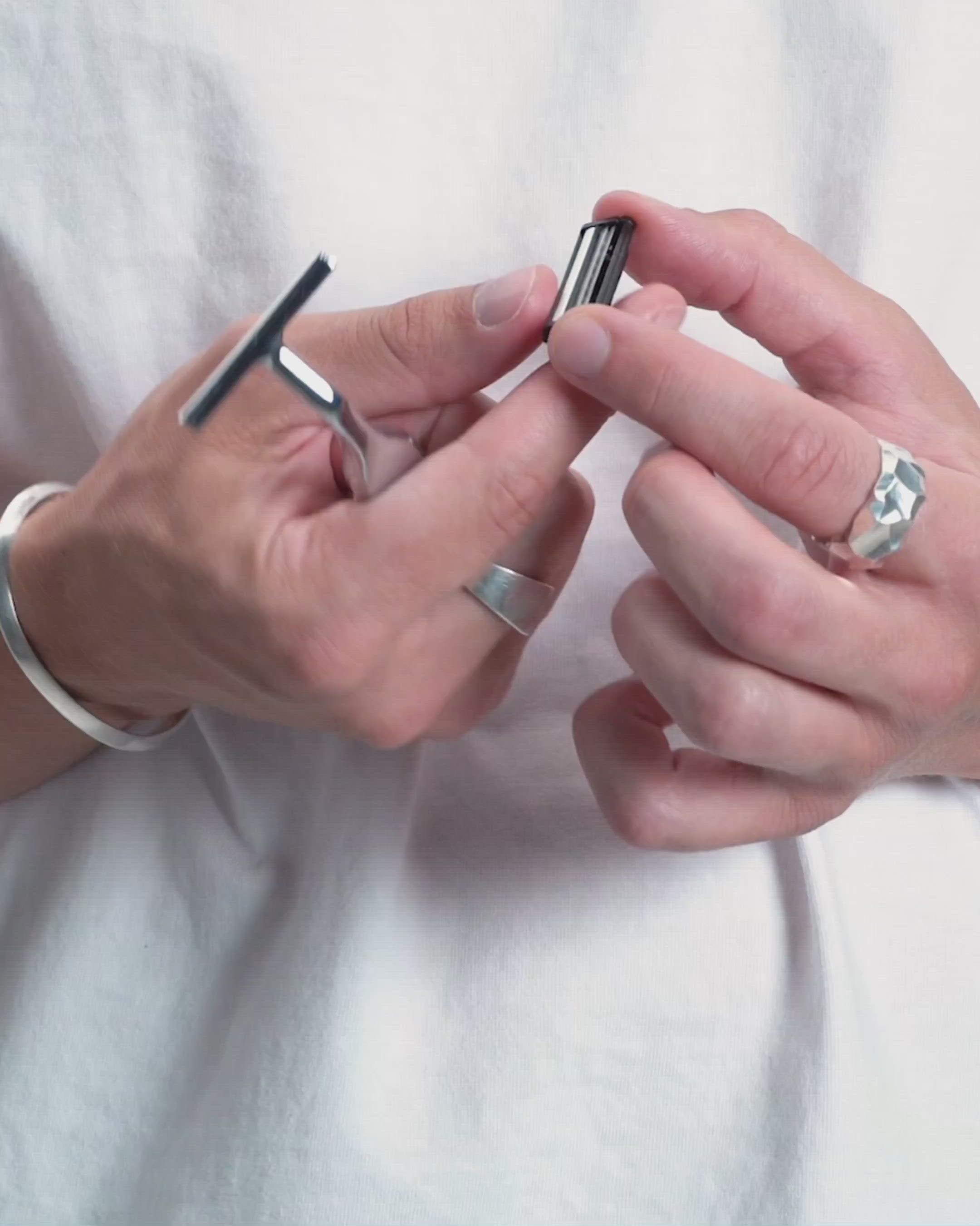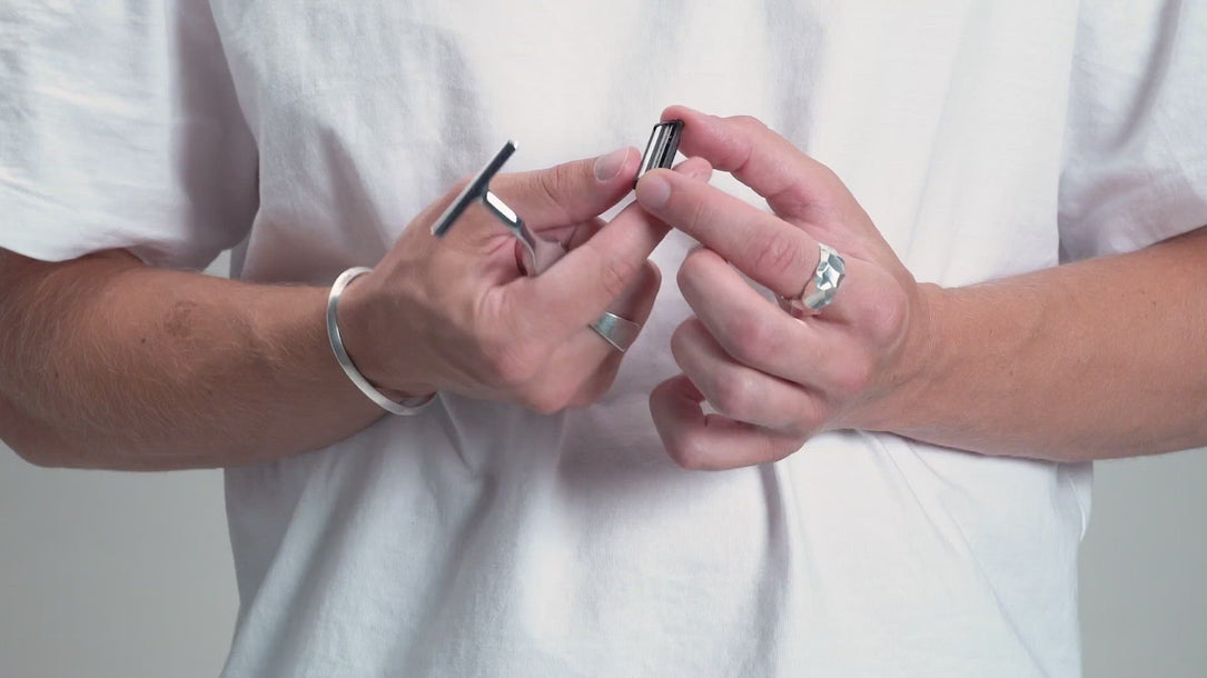 Melle's Razors is the ultimate combination of sustainable elegance and functionality in your bathroom. Our razors are made of zinc, a metal that can be recycled indefinitely without losing its value, making it 100% recyclable. The design, along with the weight, provides you with a perfect grip, and the blades are constructed to avoid irritated skin. Use the wall mount between your shavings to protect your blades and make them last longer.